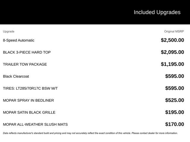 MOPAR Goodies Spray-in bedliner, Satin Black grille, slush mats basically Jeep dressed it like it was going to war.